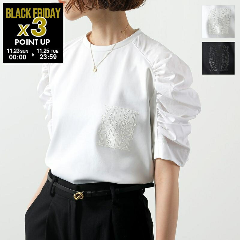 MAX MARA マックスマーラ Tシャツ MANTIDE マンティデ レディース 半袖 テクニカル ジャージー カットソー MロゴT ギャザー ストレッチ カラー2色