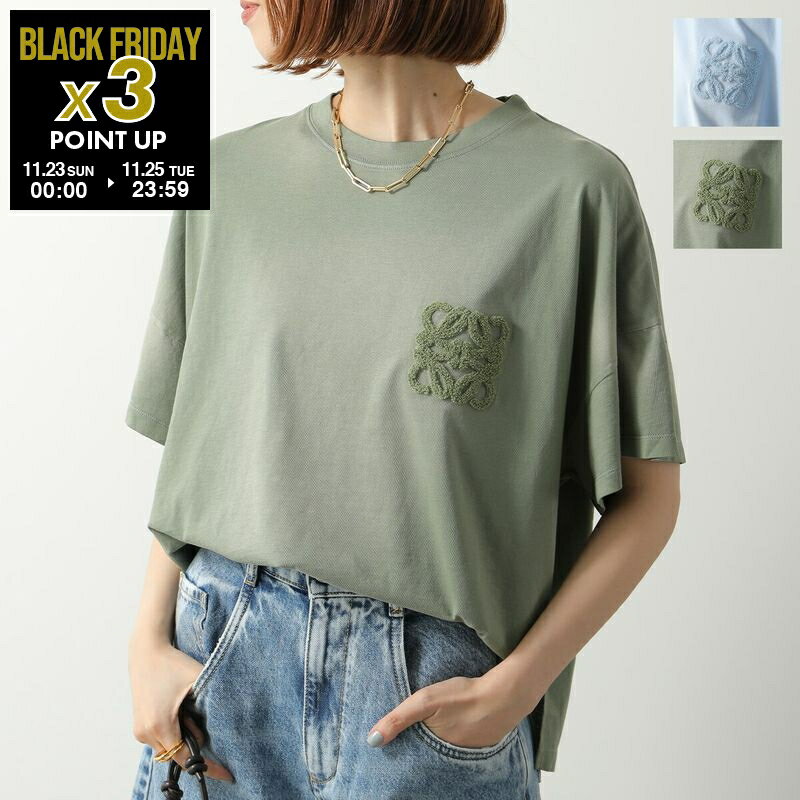 LOEWE ロエベ Tシャツ S359Y22X58 レディース クルーネック コットン カットソー 半袖 アナグラム ワンポイント ロゴT 刺繍 S359Y22X581100