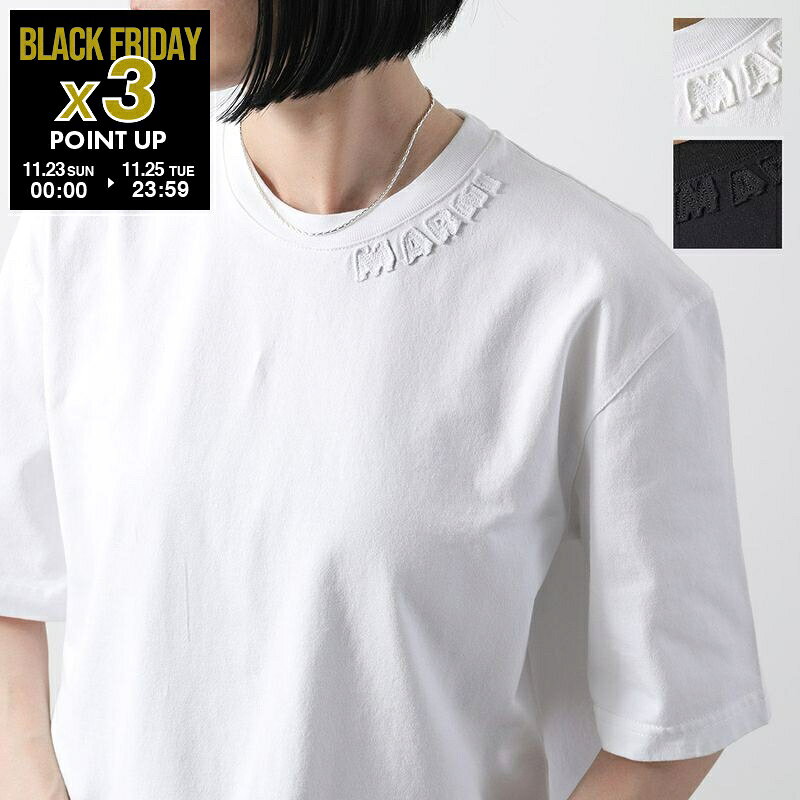 MARNI マルニ Tシャツ HUMU0287X0 UTC406 レディース 半袖 カットソー コットン クルーネック ロゴ オーバーサイズ カラー2色