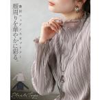 トップス カットソー 顔周りを華やかに彩る。贅沢ニュアンスカットソー シアー プリーツ 長袖 ブラック グレージュ OTONA 40代 50代 60代