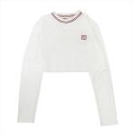 美品 22aw ミュウミュウ miumiu クロップド ロング Tシャツ カットソー 長袖 ロゴ ワッペン トリコロール S 白 ホワイト レディース