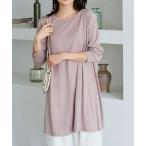 tシャツ メランジシアーカットソー袖シャーリング長袖ヘンリートップス レディース