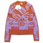未使用 22SS HERMES エルメス Cliquetis クリケティス カシミヤ100% 長袖 クルーネック カットソー 36 オレンジ パープル レディース 古着 中古
