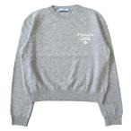新品同様 PRADA プラダ カシミヤ混 ニット セーター カットソー 長袖 インターシャ ロゴ サイズ38 グレー レディース 古着 中古