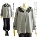 ボナ Bona お花&リボングレンチェックプルオーバー 洗える 日本製 レディース Vネック お花/デザイン/長袖/プルオーバー/カットソー/トップス 春 秋 冬