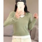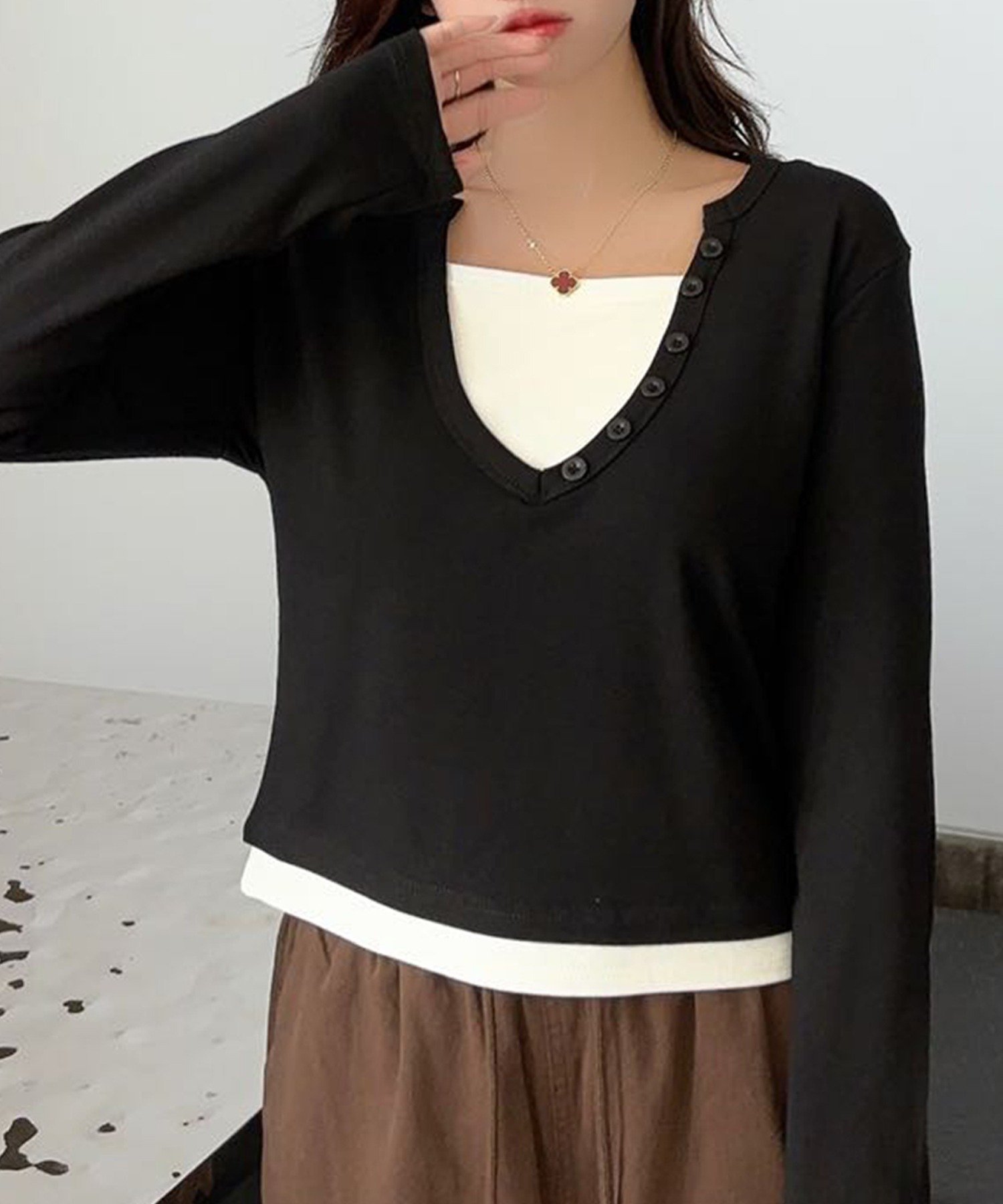 【SALE/60%OFF】aimoha - select - aimoha -select-/ボタン付きVネックレイヤードトップス アイモハ トップス カットソー・Tシャツ レッド ブラック カーキグリーン グレー ブラウン