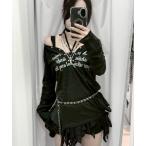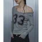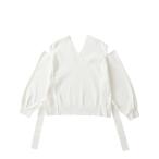 tシャツ 「NOT KNOWING」STUD V-NECK RUFFLE TOP / 「ノットノーイング」スタッズVネックラッフル長袖Tシャツ レディ