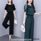 セットアップ レディース ファッション 20代 30代 40代 50代 ワイドパンツルック 太め カットソー 女性 春 夏服 シフォンカットソー ワイドパンツ