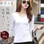 Tシャツ カットソー レディース 長袖 Vネック インナー 無地 重ね着 ストレッチ シンプル 体型カバー 着痩せ カジュアル 普段着 お出かけ 秋
