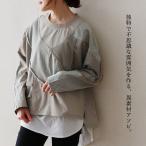 カットソー 長袖 レディース クルーネック 異素材切り替え コットン ツイル デニム メッシュ パティ