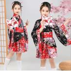 子供着物 女の子ロリータコスプレ衣装 交差和服 ハロウィンコスプレ衣装 花柄プリント コスチューム 着物ドレス 長袖 3点セット 文化祭 学園祭 祭り羽織 花火
