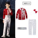 子供 ダンス衣装 キッズ スパンコール ダンス 発表会 かわいい ステージ衣装 舞台衣装 半袖 男の子 シャツ ロングパンツ ホワイトパンツ セットアップ 蝶ネクタ