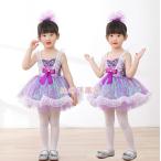 可愛いチュチュスカート紫系 子供ダンス衣装 女の子ワンピース 男の子上下セットスパンコール付 きらきら 練習着 レッスン着 ジュニア 学園祭 発表会ダンス 衣