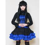 ゴスロリドレスOP ロイヤルブルー ターンダウンカラー 長袖ロリータワンピースドレス カマーバンド付きアイドル衣装