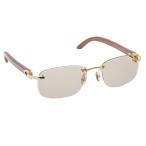 【値下げ】CARTIER カルティエ ウッド テンプル リムレス アンティーク サングラス 140b ?19 ウッド メタル ブラウン ゴールド 中古
