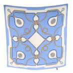 カルティエ Cartier スカーフ 総柄 シルク 絹 水色 ライトブルー 白 ホワイト /AN49 ■OH レディース