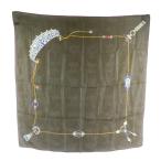 カルティエ Cartier マストドゥカルティエ Must de Cartier スカーフ 大判 絹 シルク 宝石 ジュエリー ロゴ カーキ /XZ ■GY19