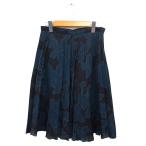 美品/カルバンクライン Calvin Klein CK プリーツスカート 表記 4号 11号 L 相当 青緑 ボタニカル柄 お出掛け 春夏 ボトムス レディース