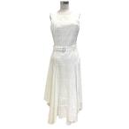 カルバンクライン CALVIN KLEIN ワンピース ノースリーブ コットン フレア ウエストベルト ロング丈 刺繍 12 白 ホワイト レディース