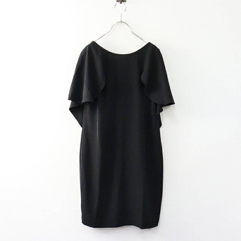 美品 Calvin Klein カルバンクライン ストレッチ フリルスリーブドレス ワンピース サイズ6 ブラック レディース 古着 中古