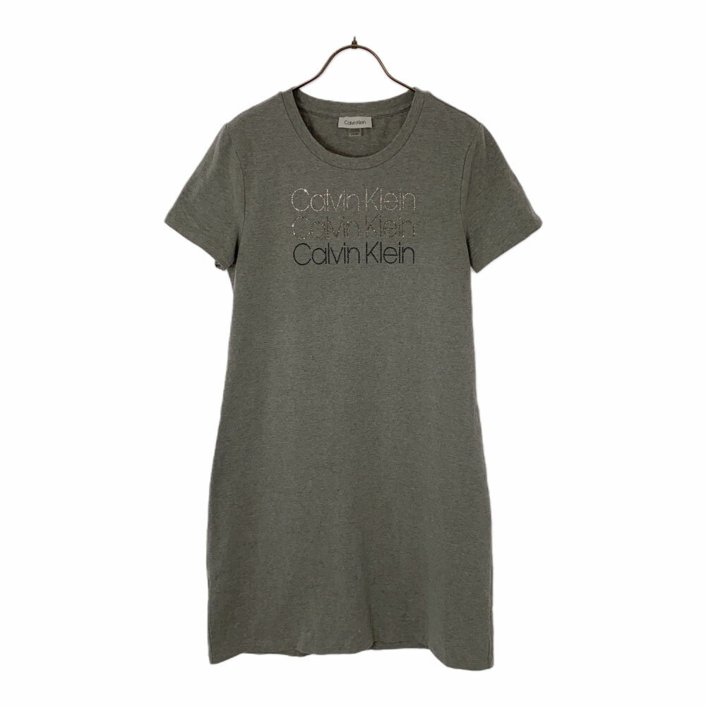 Calvin klein カルバンクライン ラインストーン 半袖 ワンピース M グレー レディース 古着 中古