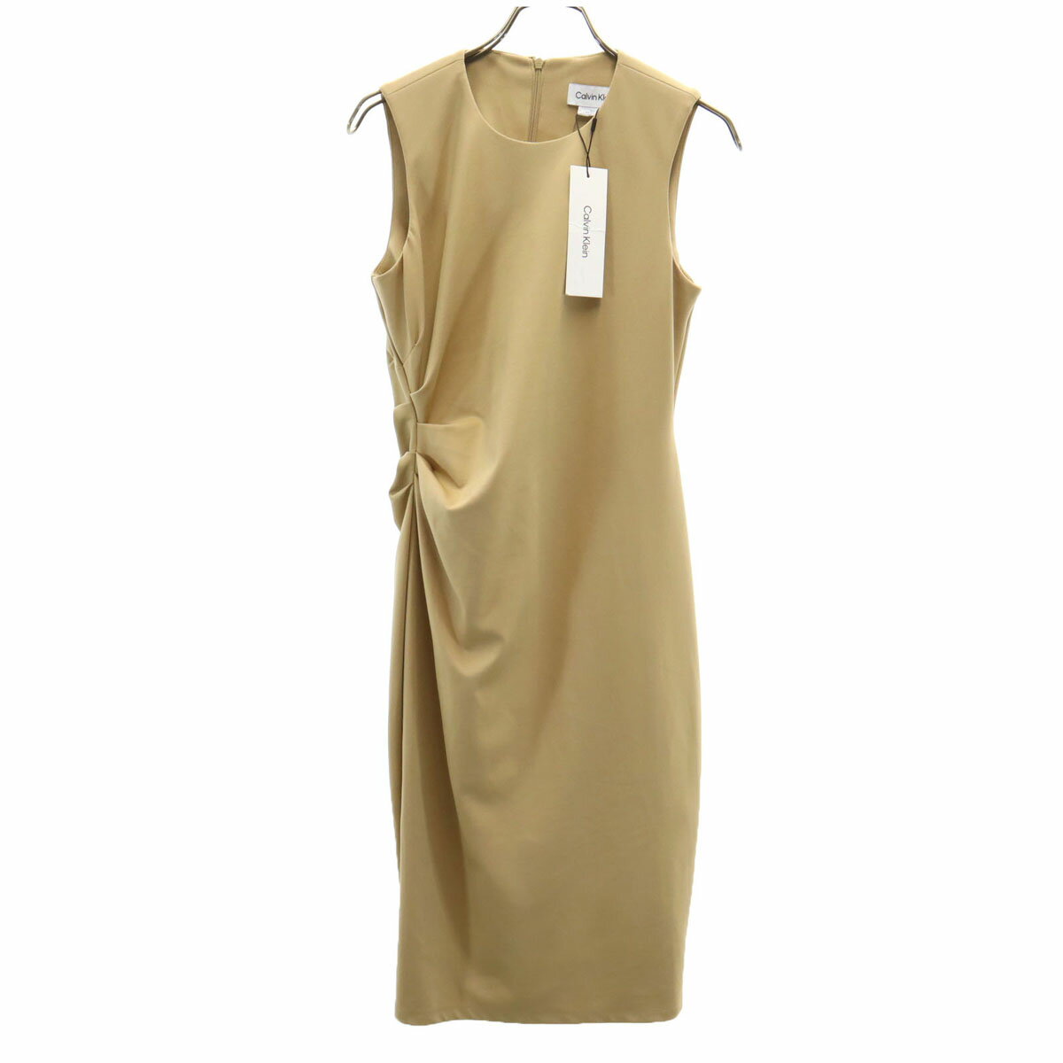 Calvin klein カルバンクライン タグ付き ノースリーブ Vネック ワンピース ベージュ 未使用 レディース 古着 中古