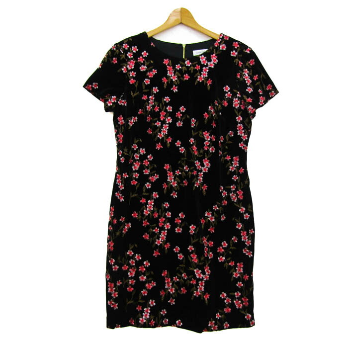 カルバンクライン ワンピース トップス 半袖 花柄 大きいサイズ レディース 12Pサイズ 黒×赤 Calvin klein 【中古】