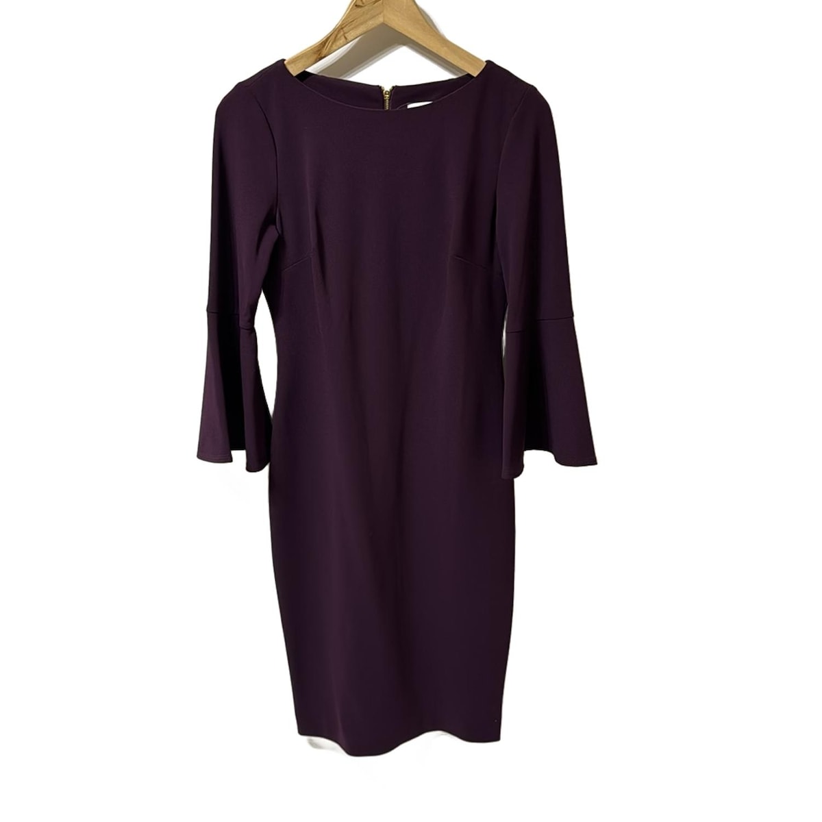 【中古】CalvinKlein(カルバンクライン) ワンピース 長袖/ひざ丈 パープル(ワイン)