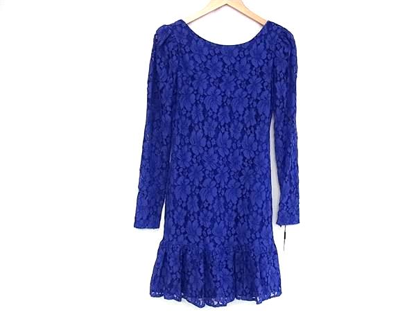 ■新品■未使用■ Calvin Klein カルバンクライン コットン×ナイロン 花 フラワー 長袖 ワンピース サイズ 4 洋服 ブルー系 FL8452