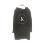 カルバンクラインジーンズ Calvin Klein Jeans ロゴ パーカー ワンピース 膝丈 長袖 XS ブラック /HK ■OS レディース