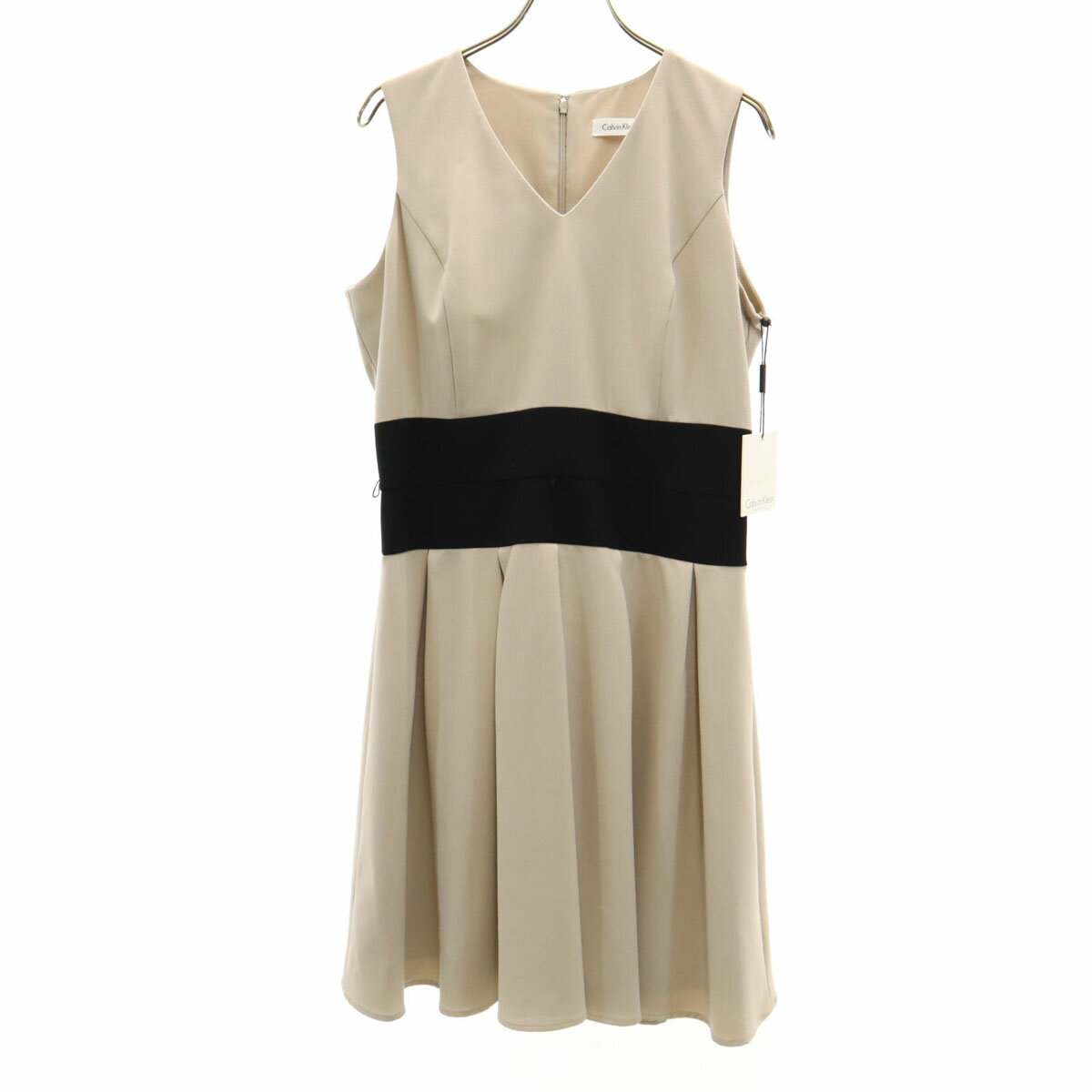 古着 Calvin klein カルバンクライン タグ付き ノースリーブ Vネック ワンピース ベージュ 未使用 レディース 【中古】 【PD】