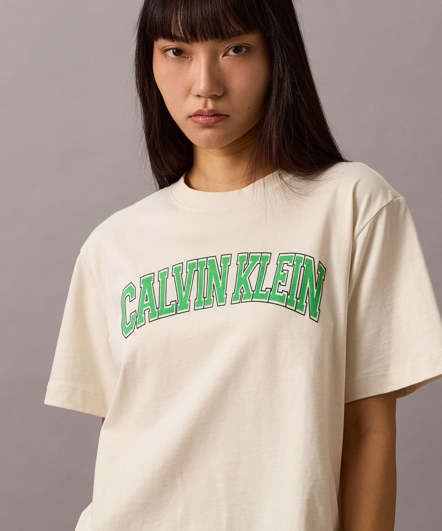 【SALE/30%OFF】Calvin Klein (W)【公式ショップ】 カルバンクライン コットンリラックスドTシャツ カルバン・クライン トップス カットソー・Tシャツ ホワイト ブラック【送料無料】