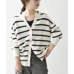 カーディガン 「新色追加」クルーネック無地ボーダー長袖ニットカーディガン レディース