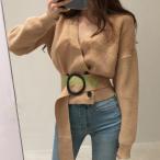 クールネック カーディガン 羽織り ルーズフィット 柔らか素材 大きいサイズ ショートカーディガン レディース トップス 長袖ニット セーター 前開き 春 秋