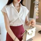 ブラウス 半袖 フレンチスリーブ シャツ トップス シフォン サテン レディース 無地 Vネック 大人 上品 オフィス カジュアル エレガント きれいめ 春 夏 秋 韓国
