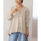カーディガン (接触冷感・毛玉になりにくい・UVカット) 綿混スキッパーネックニットカーディガン レディース