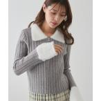カーディガン ジップアップ襟付きリブカーディガン レディース