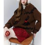 カーディガン ウサギ柄ジップアップニットカーディガン レディース