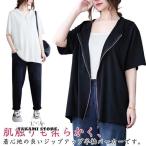カーディガン ジップアップ半袖パーカー レディース