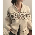 カーディガン Y2K スノーカラージップアップノルディッククロップニットウェア レディース