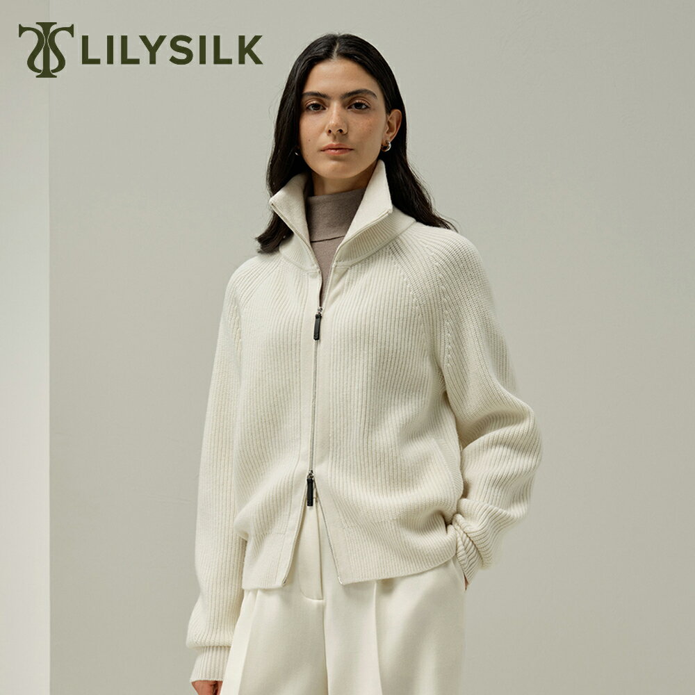 LILYSILK カシミヤ ニット カーディガン レディース 秋冬 ジップアップ タートルネック 大きいサイズ きれいめ 片畦編み 長袖 ブランド カジュアル オフィス おしゃれ 軽量 暖かい 上質 柔らかい