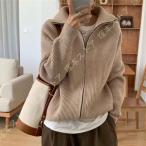 送料無料 全5色 ジップアップ ニットカーディガン レディース 秋服 カーディガン ニット 折り襟 ケーブル編み ショート丈 トップス 春 秋
