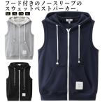 ジッパー ノースリーブパーカー ジップアップ フード付き ベスト カーディガン トップス 春 夏