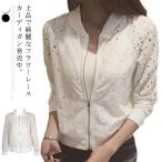 【】カーディガン ジャケット ブルゾン レディース トップス スカジャン 羽織 アウター 薄手 レース ジップアップ メッシュ 透け感 花刺〓