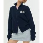 カーディガン 配色 ロゴ コンパクト ジップアップ ニット カーディガン レディース