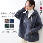 トップス パーカー 裏起毛 裏毛 ジップアップ ドルマン カーディガン コットン 綿100% ポケット付き 綿 harmonie アルモニ 日本製 62520635