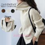 ニットジャケット レディース 立ち襟 ショット コート ダブルジップ ニットカーディガン ニット カーディガン 体型カバー 長袖 ジップアップ セーター リブ ドロ