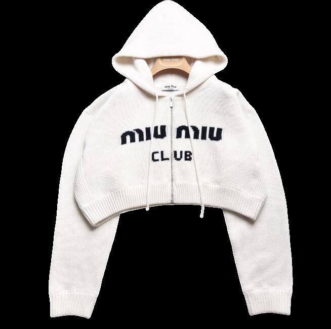 ミュウミュウ 【中古】 MIU MIU ミュウミュウ 2022モデル カーディガン クロップド 短丈 フード カシミヤ100%ニット ジップアップ サイズ38