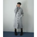 カーディガン スタンドカラーケーブルロングニットカーディガン レディース
