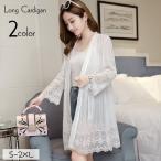 カーディガン ロングカーディガン 長袖 薄手 羽織り 大きいサイズ レディース 女性 婦人服 レース シアー 透け感 ライトアウター トップス 前開き